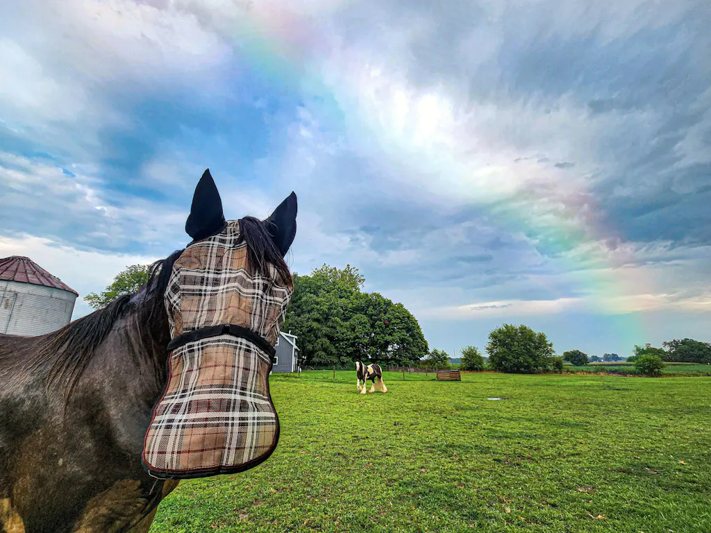 ✅ Ear-Free, Open Design – Perfect for horses that won’t tolerate ear coverage but still need eye protection. Also great for use outside of fly season while keeping the forelock free.